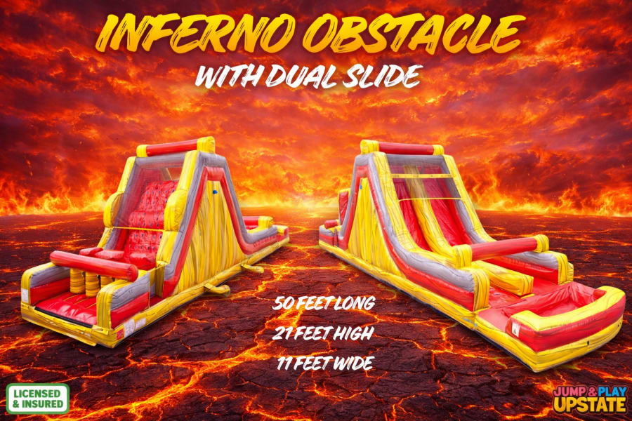 Ignite your event with the Inferno 50' Rock Climbing Wall — a bold, high-energy attraction built for nonstop action. ⚡️ Climbs, crawls, squeezes, and slides combine into one unforgettable race. This unit fits birthdays, school events, church gatherings, corporate functions, and neighborhood parties. Adults, teens, and kids love the challenge. 🔥