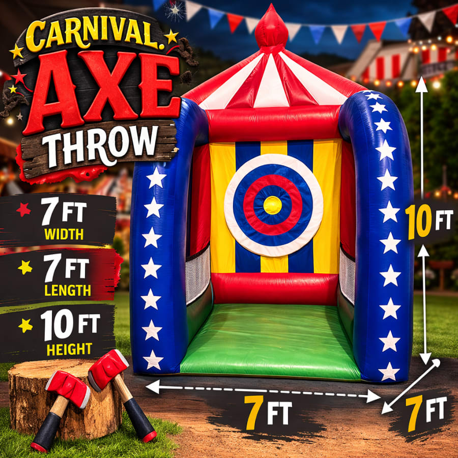 Bring bold fun to your home party with Carnival Axe Throw. This single-player, residential-only rental delivers safe, thrilling target practice in a compact setup. Perfect for backyard birthdays, small gatherings, and private celebrations. Memorable for everyone. Book now and add an exciting centerpiece to your event. 🏡🎉