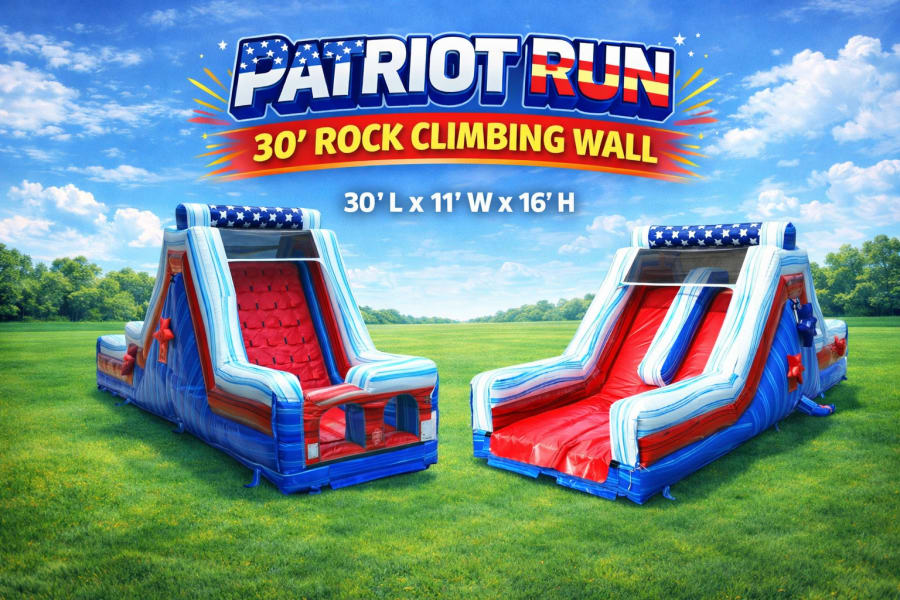 Reserve the Patriot Run 30' Rock Climbing Wall today. We handle delivery, professional setup, staff supervision (optional), and takedown. Create competitive races, memorable photos, and nonstop fun for every guest. Book now and make your event the talk of the town! โจ๐