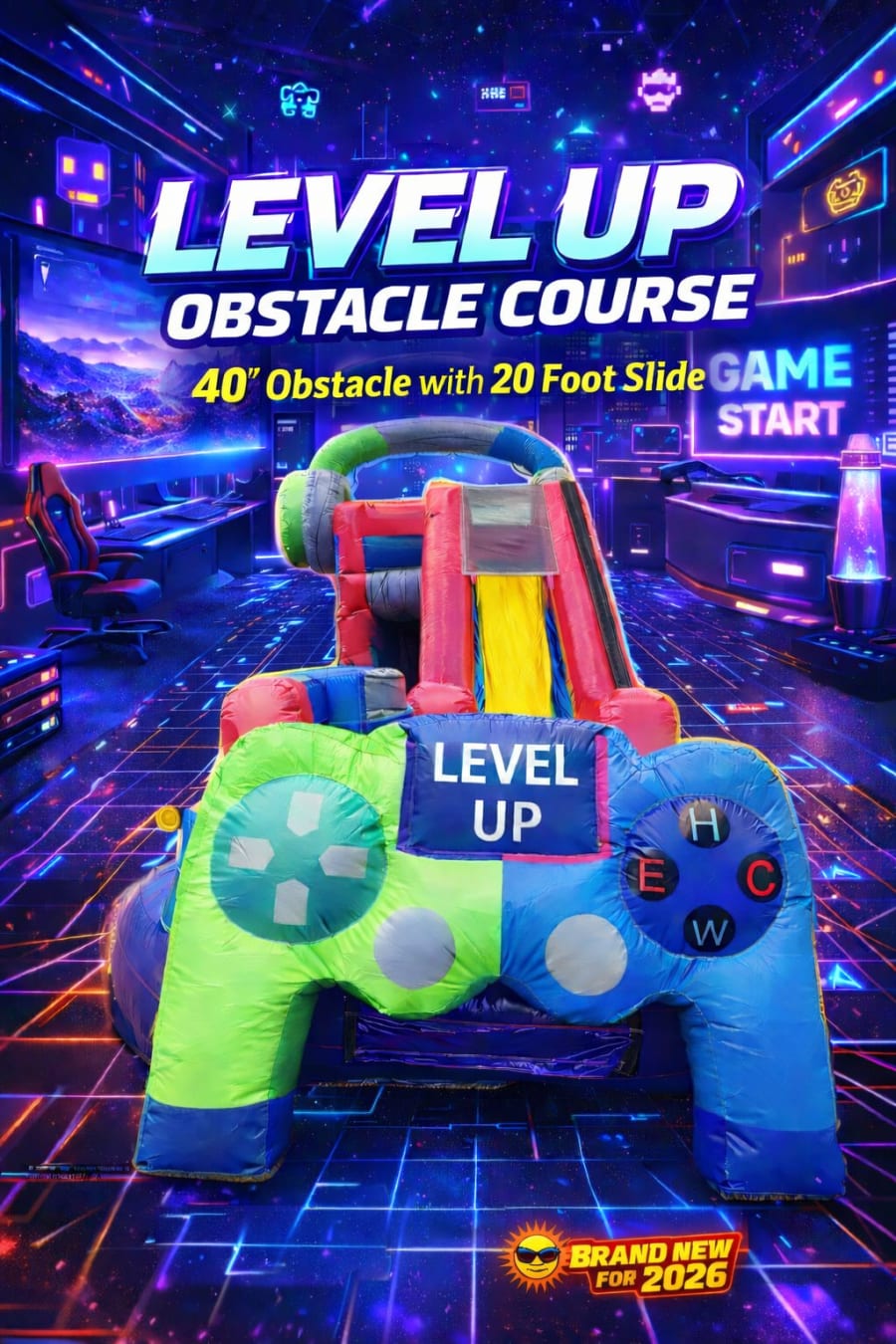 Bring non-stop action to your next event with the Level Up Obstacle Course With 20' Slide Wet/Dry. πŸŽ‰ Bright, bold, and built for speed, this course blends climbing, crawling, squeezing, and a thrilling 20-foot slide for wet or dry play. Perfect for birthdays, school fields, church events, corporate picnics, and block parties. Safe, clean, and crowd-ready. βœ…