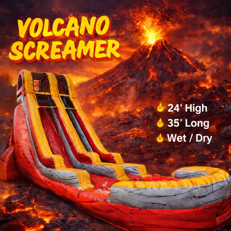 Transform your next event into an unforgettable adventure with the Volcano Screamer 24' Wet/Dry Slide! This colossal slide promises endless excitement and is a perfect addition to any party or gathering. Standing tall at 24 feet, it’s designed to bring the thrill and fun of a water park straight to your backyard or event venue.