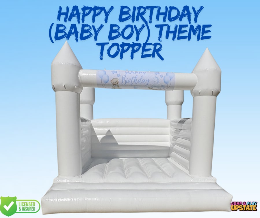 Baby Boy Theme Topper — Gender Reveal Luxury White Bouncer